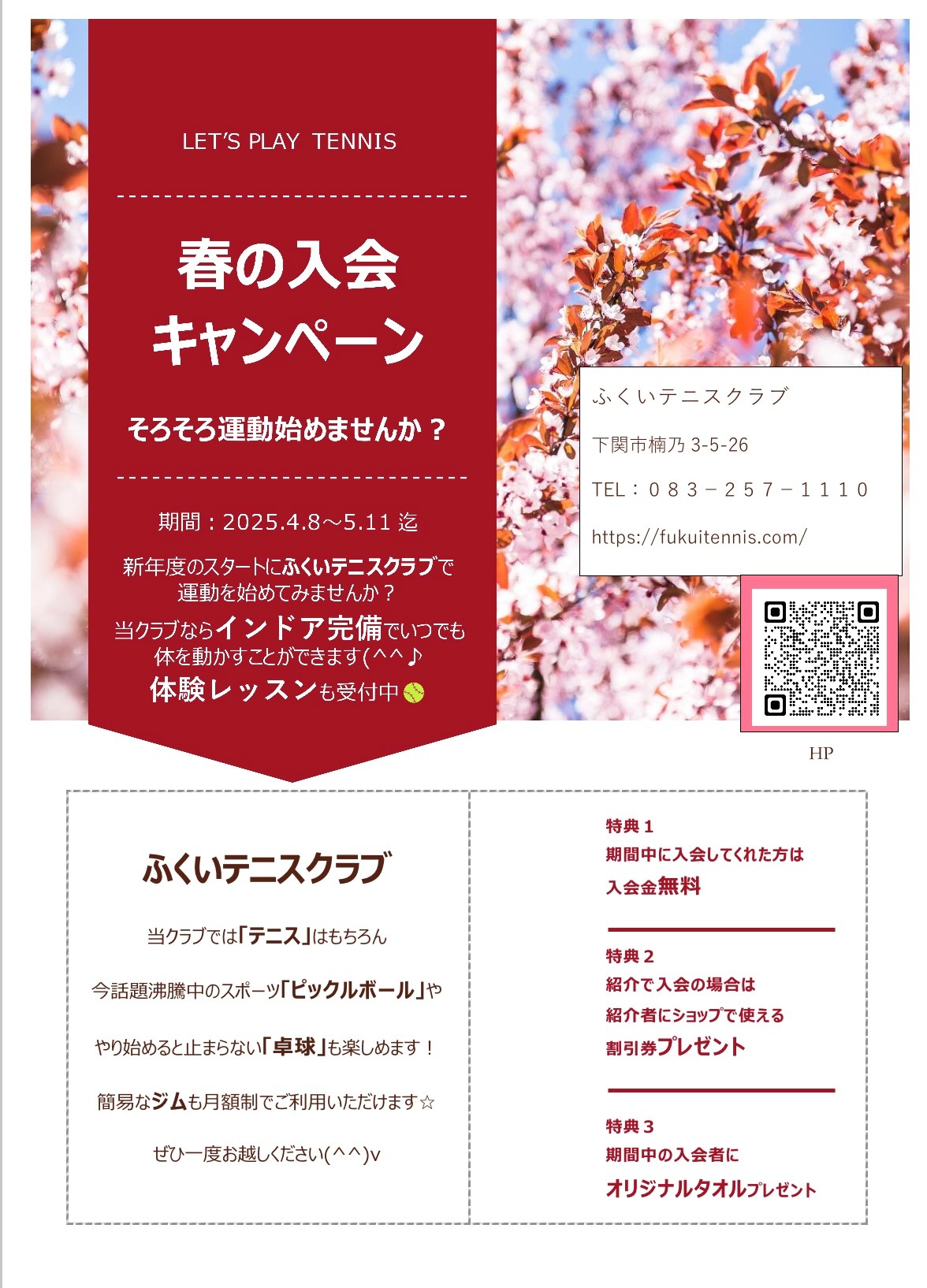 ただ今春の入会キャンペーン実施中!